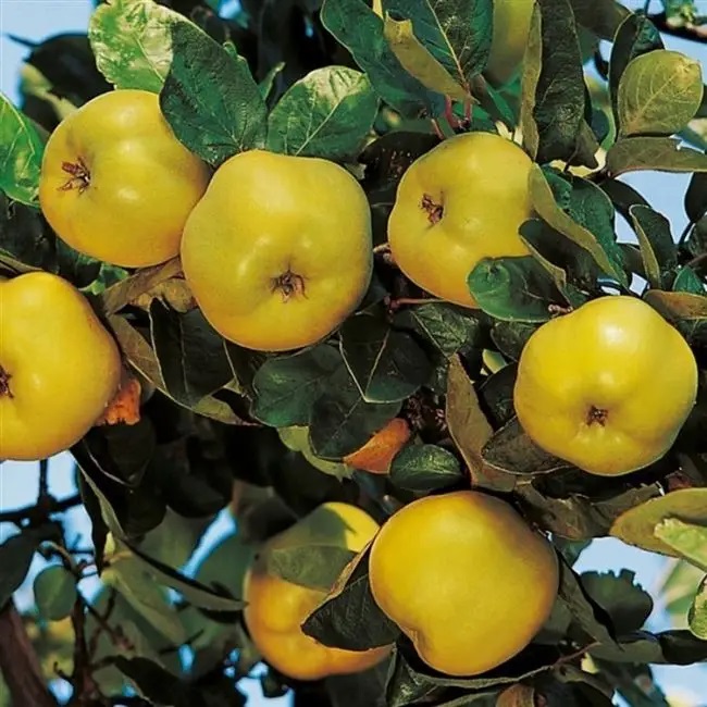 Умеренно растущее дерево с густой шаровидной кроной. Плоды правильной формы, крупные (до 300 г), с тонкой гладкой кожицей. Поверхность фрукта практически без опушения, лимонно-жёлтого оттенка. Мякоть сочная, ароматная, кисло-сладкого вкуса. Урожайность — 3–10 кг с растения. Сорт отличается высокой зимостойкостью и засухоустойчивостью, а также устойчивостью к грибным болезням. |